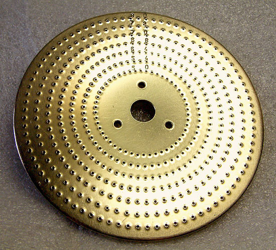Le disque a 7 rangées comportant des cercles de: 50, 54, 64, 68, 70, 72 et 80 trous permettant de réaliser les divisions suivantes:
