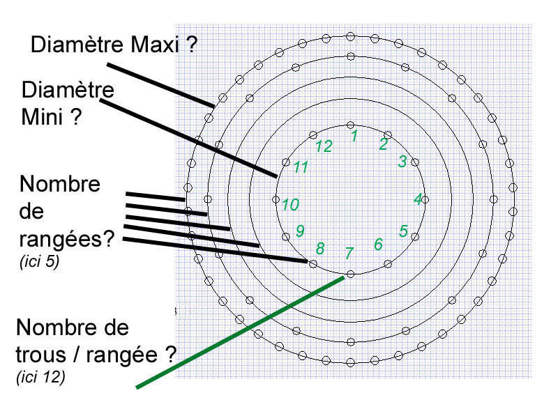 (Maximum 7 rangées. La première rangée ne peut pas dépasser les 56 trous et la dernière rangée les 160 trous)
