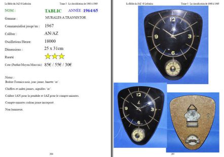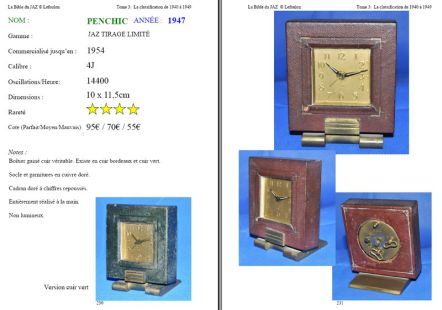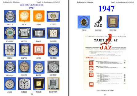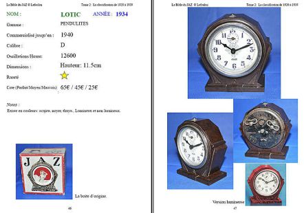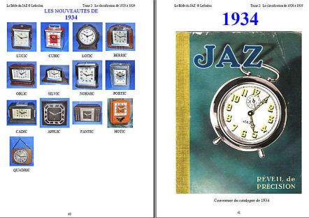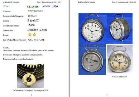 - Les tomes suivants, une documentation sur tous les JAZ (réveils, pendulettes, pendules...)produits indiquant l'année, le nom du modèle, ses principales caractéristiques, sa cotation, sa rareté... Chaque tome (sauf leNo.2) couvrant une période de 10 ans.